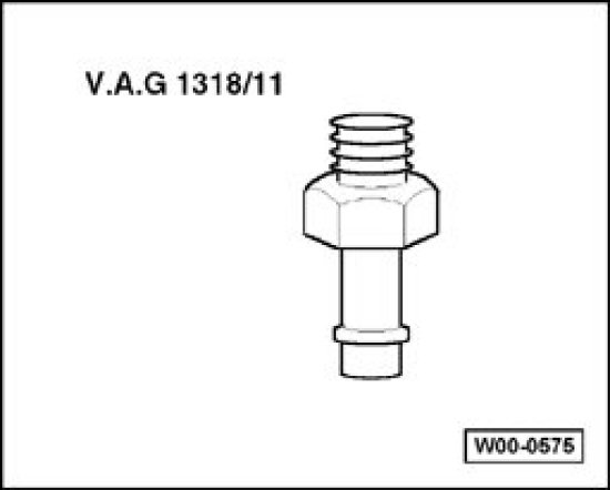 - Connect V.A.G 1318 pressure gauge with V.A.G 1318/10 adapter to hose.