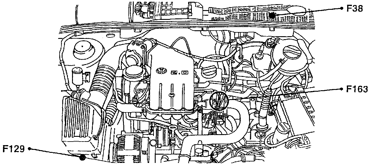 Mounted on A/C receiver/drier, to right of A/C condenser