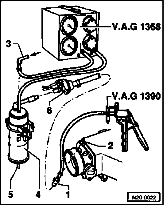 - Operate VAG 1390 (or US8026 hand vacuum pump) several times.
