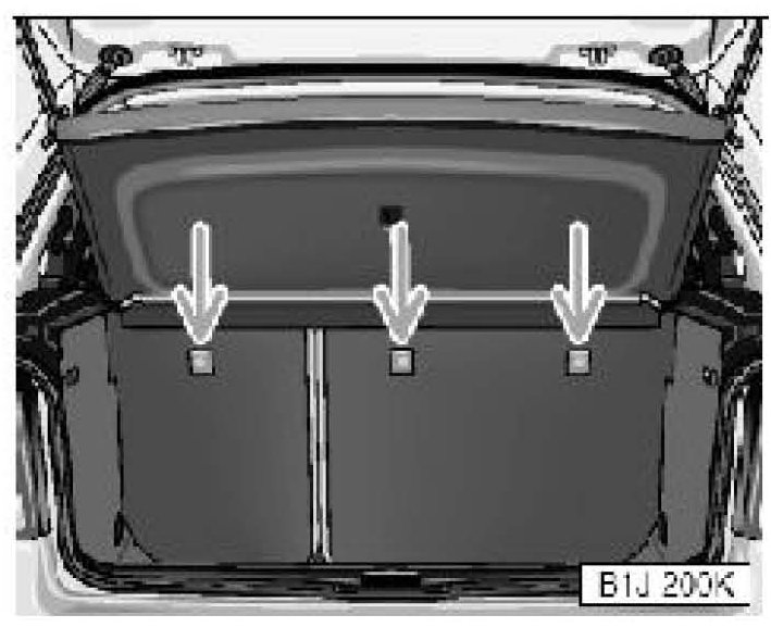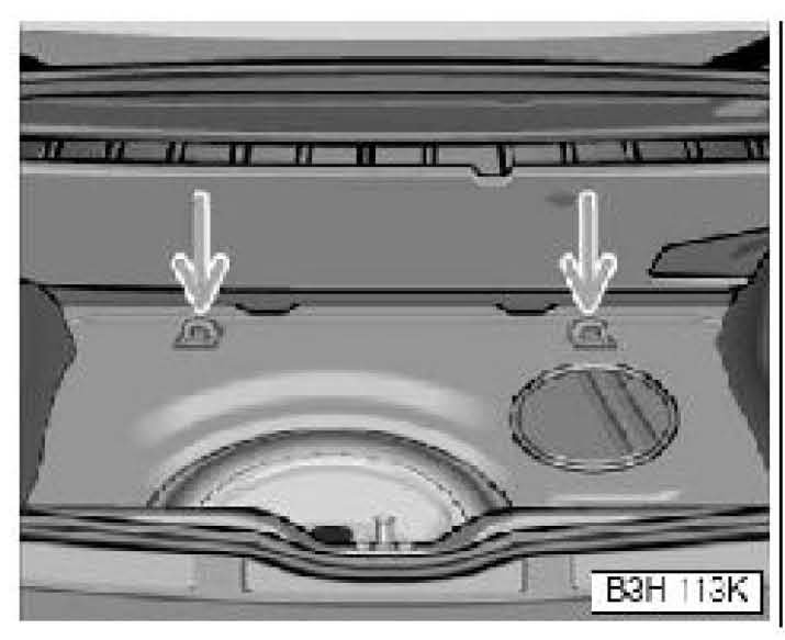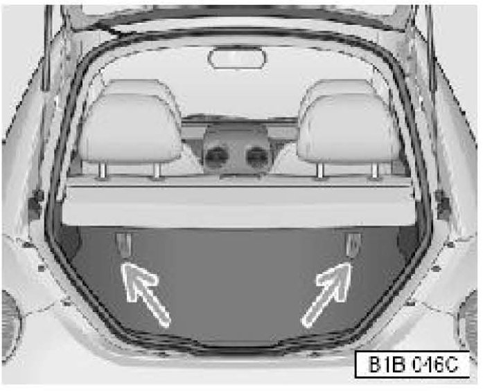 Illustration shows tether anchors in luggage compartment for Cabrio.