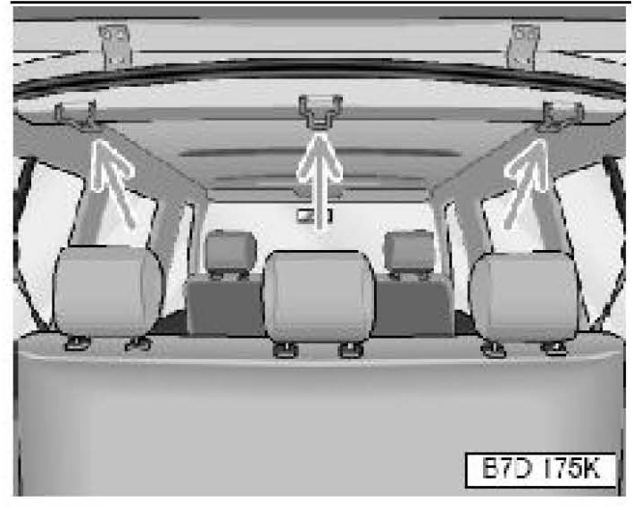 Illustration shows tether anchors for the last row of seats in EuroVan models beginning with model year 2001.