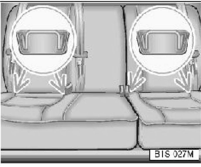 Lower anchor attachment points are located between the rear seat back and rear seat cushion for the outboard seating positions.