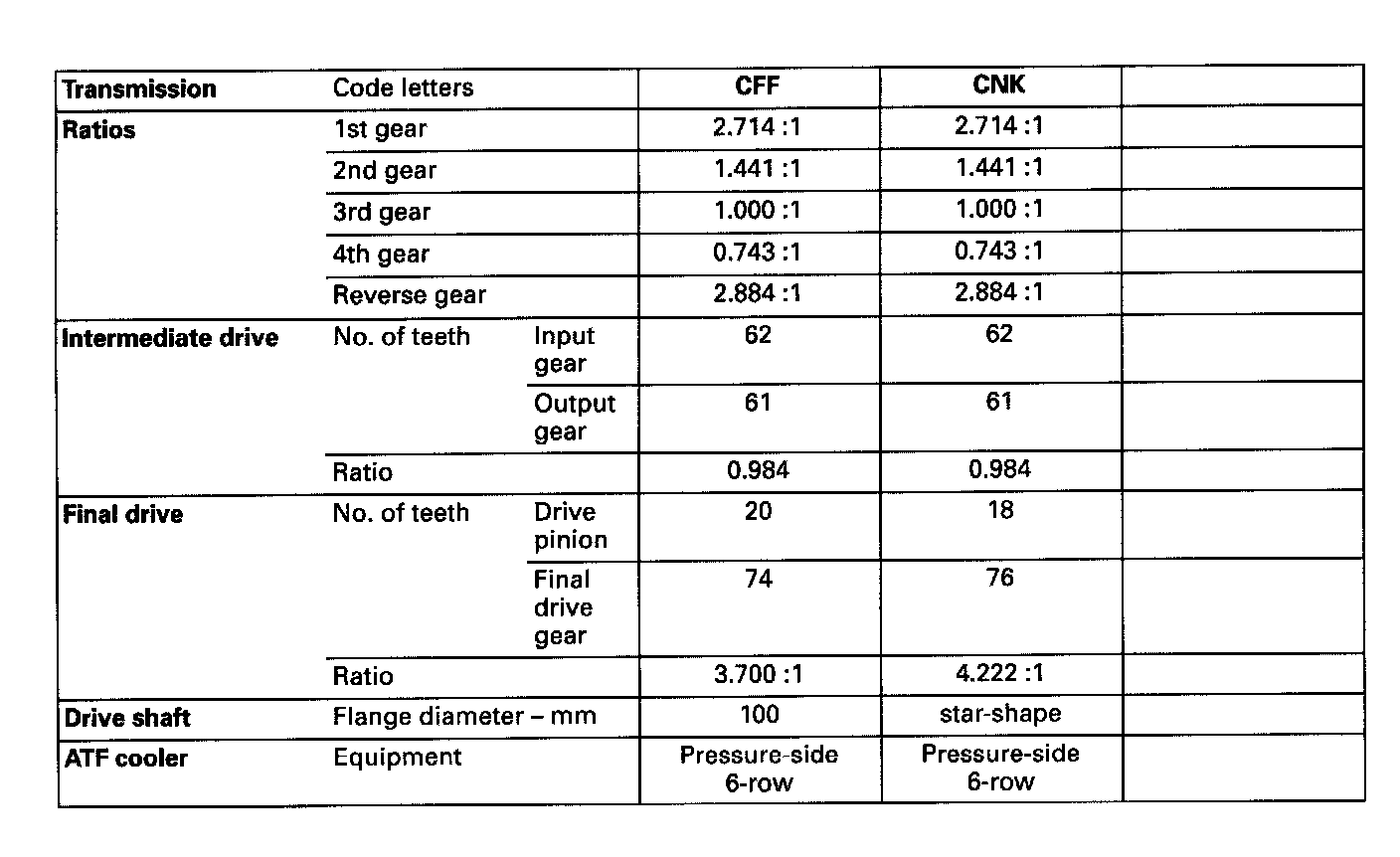 096 Automatic Transmission Code Letter CFF, CNK:
