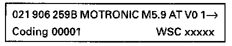 The VAG 1551 scan tool display will show the control module identification, e.g.: