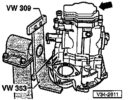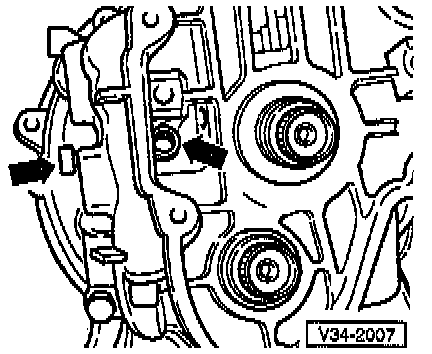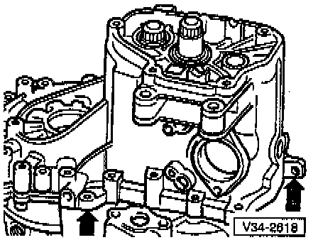 - Remove transmission housing cover (-arrow-).