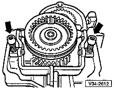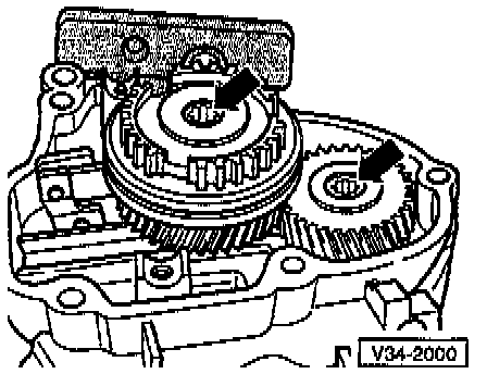 - Remove 5th gear shift fork (-arrow-).
