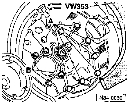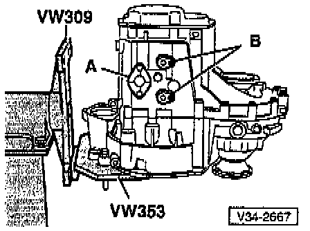 - Remove remaining bolts -A- from inside clutch housing (attaching clutch housing to transmission housing).