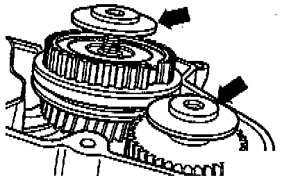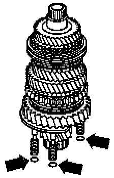 - Remove bolts (-arrows-) for reverse idler shaft support bracket.