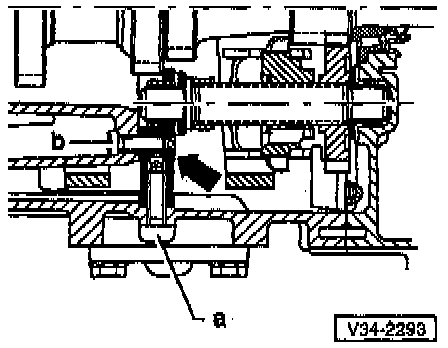 - Before installing 5th gear, press synchro-ring onto cone of gear and measure gap -a- with feeler gauge.