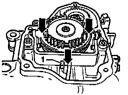 - Pointed teeth of operating sleeve -arrow 1- and high shoulder of synchro-hub -arrow 2- face transmission housing