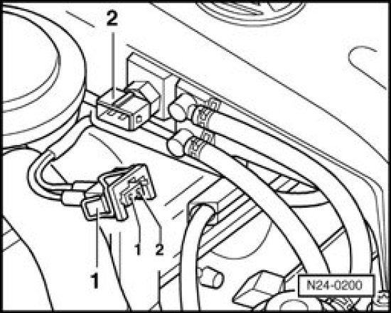 - Disconnect 2-pin connector -1- from Intake Air Temperature (IAT) Sensor -G42- (-2-).