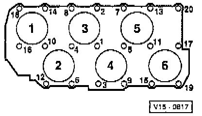 - Loosen head bolts in reverse of sequence shown in the illustration.