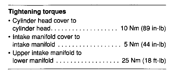 Cylinder Head Cover And Intake Manifold Torque Specifications: