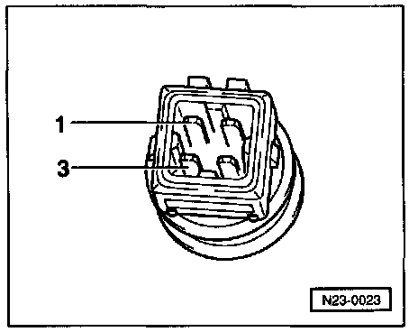 - Measure resistance between engine temperature sensor terminals -1- and -3- using multimeter.