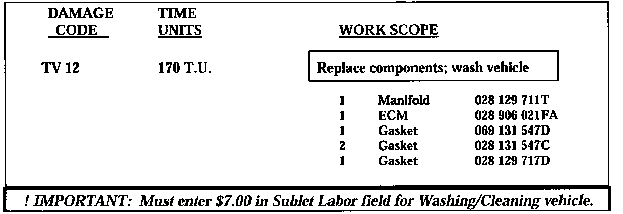 The system automatically enter the labor and part numbers applicable to the above listed reimbursement code.