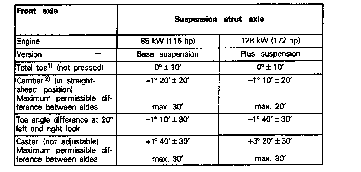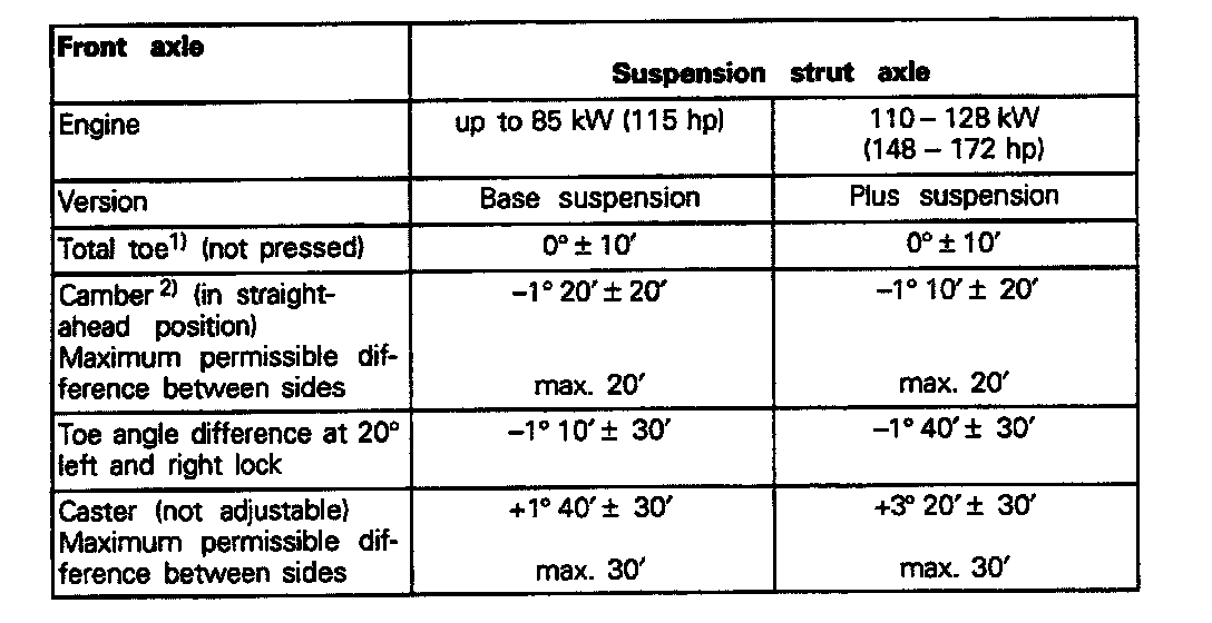 2) Camber corrections can only be made at the wheel bearing housing/suspension strut connection.