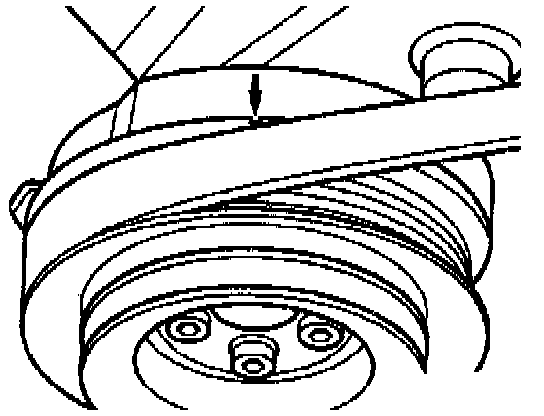- Set vibration damper (V-belt pulley) to TDC no.1 cylinder.
