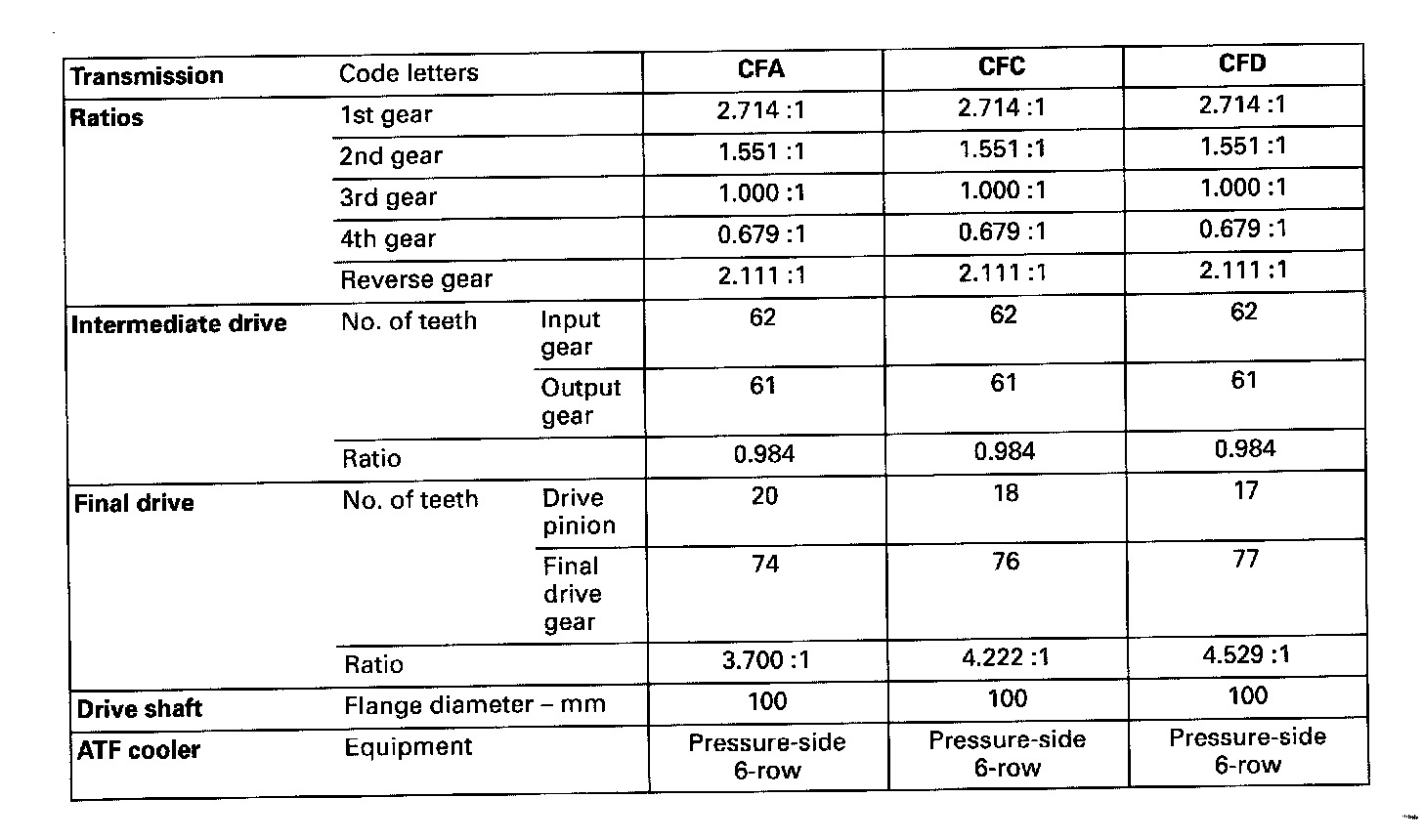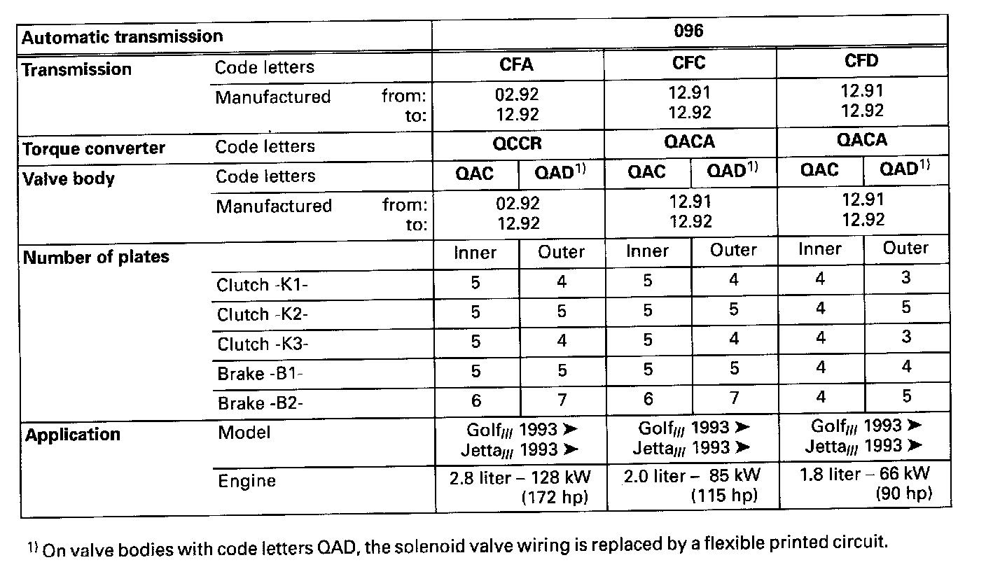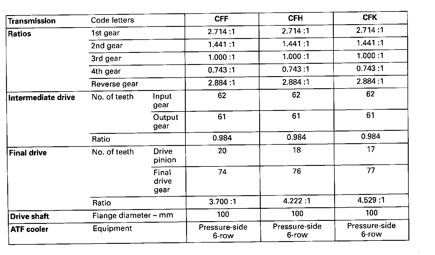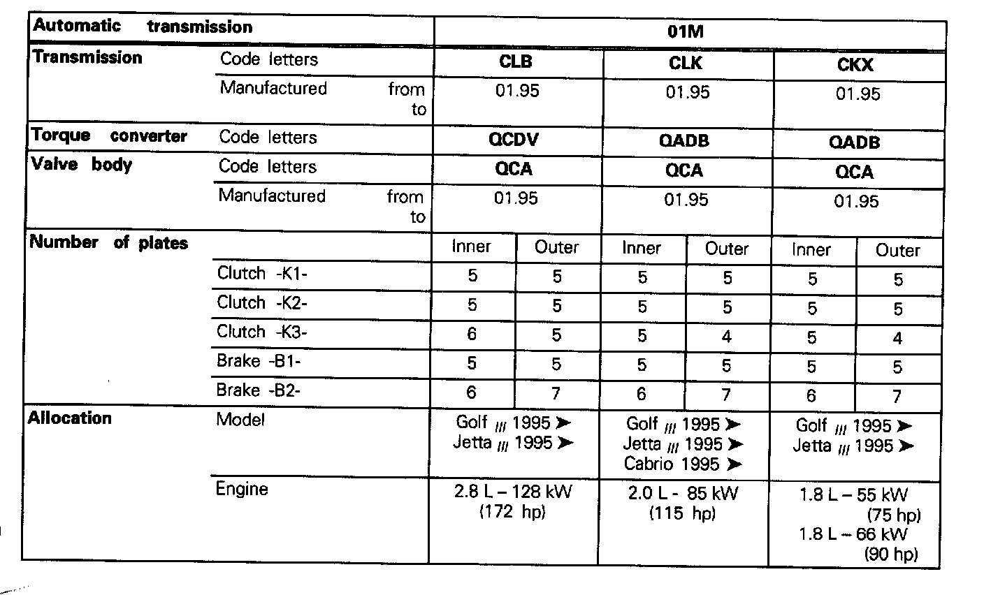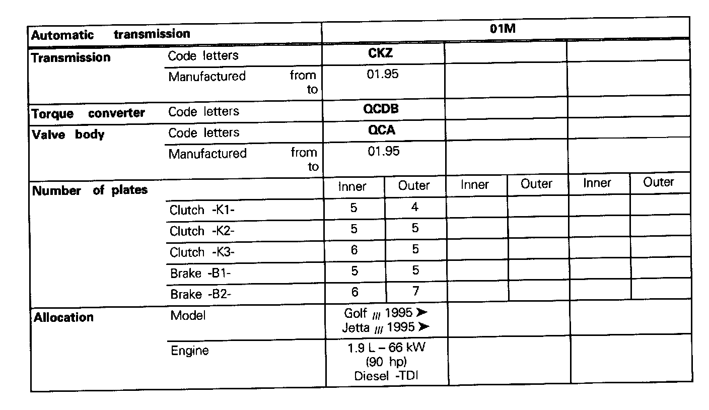 01M Transmission- Code Letters, Transmission Allocation, Ratios, Equipment -