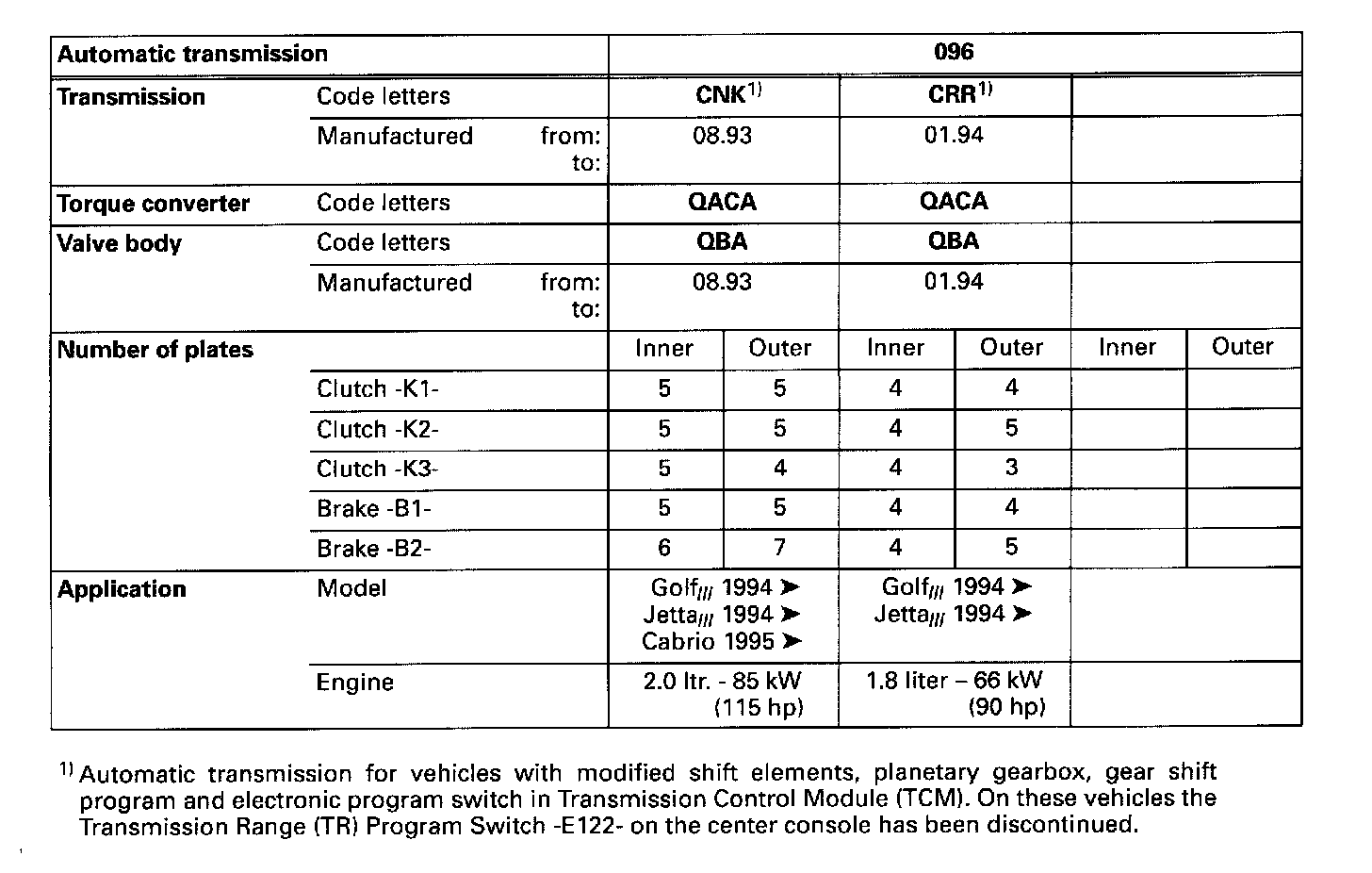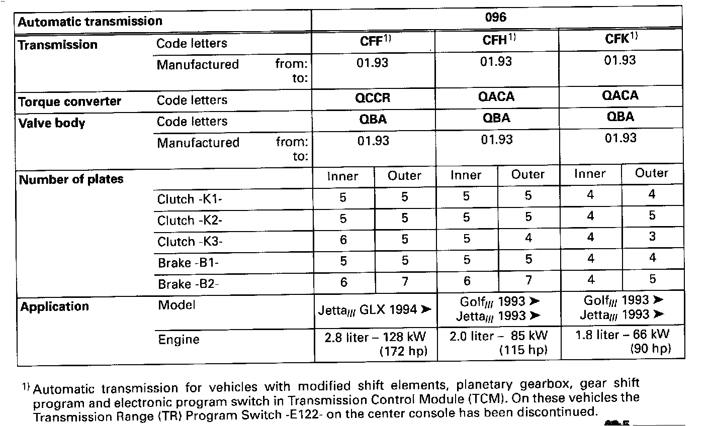 - Transmissions for vehicles with Transmission Range (TR) Program Switch E112 -