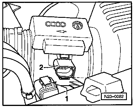- Disconnect harness connector -1- from Mass Air Flow sensor -2-