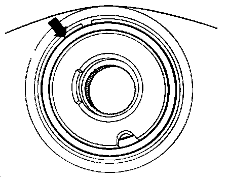 - Drill 3 mm (1/8 in.) diameter hole into steering lock housing at mark until lock cylinder stop spring is visible.