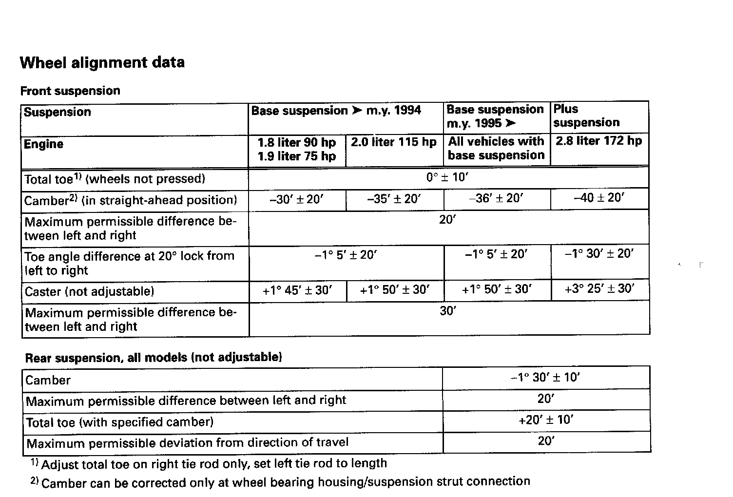 Wheel Alignment Data: