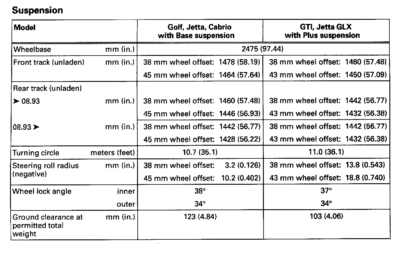 Suspension Technical Data: