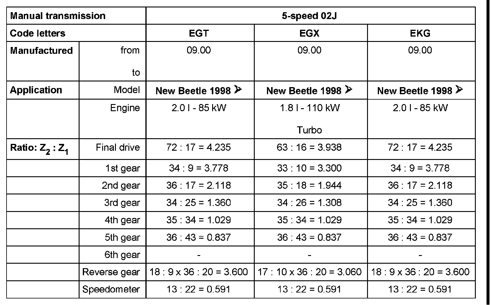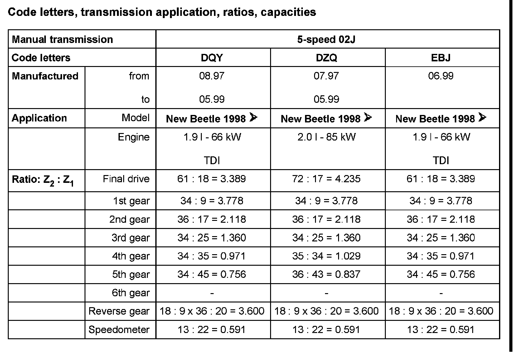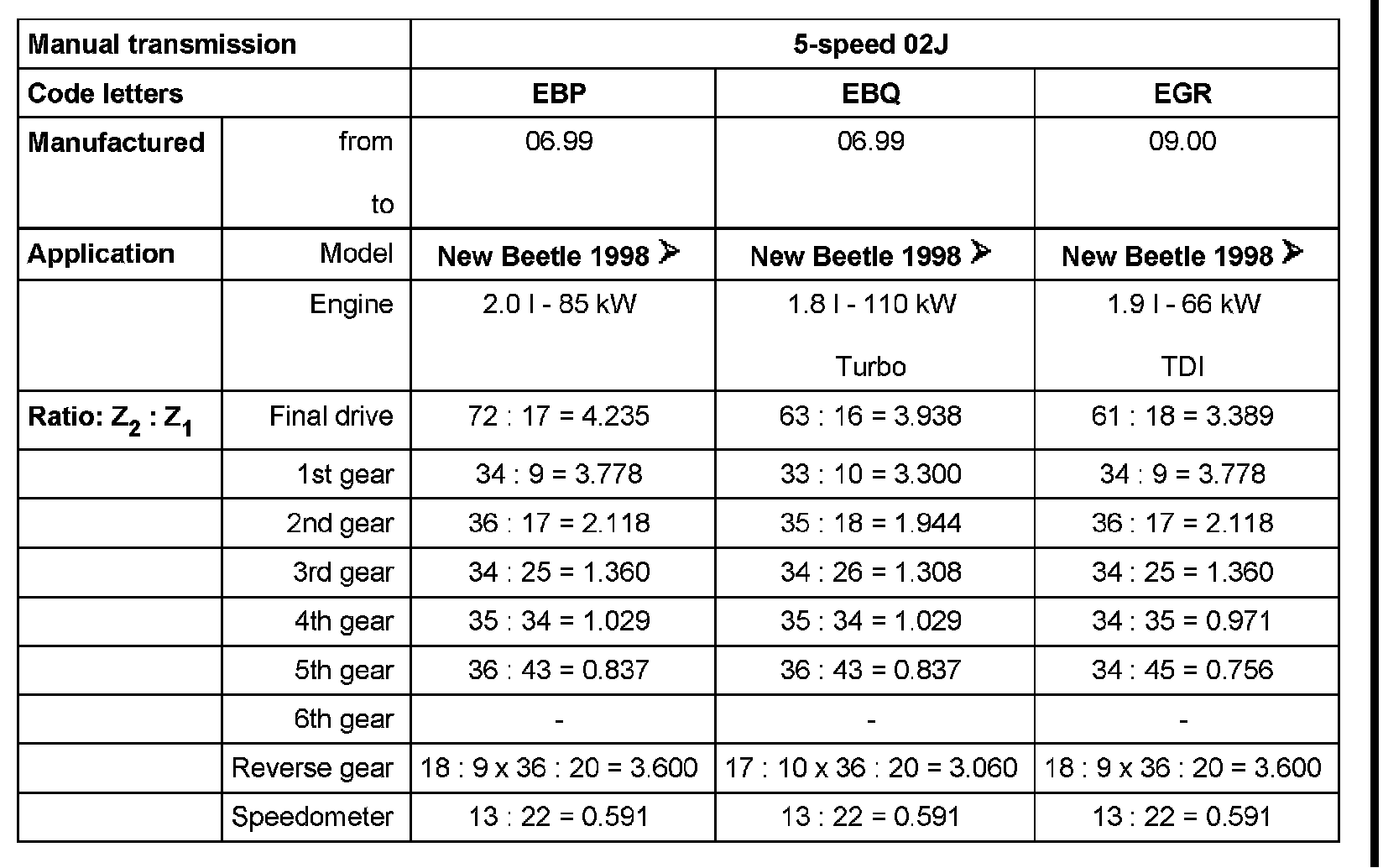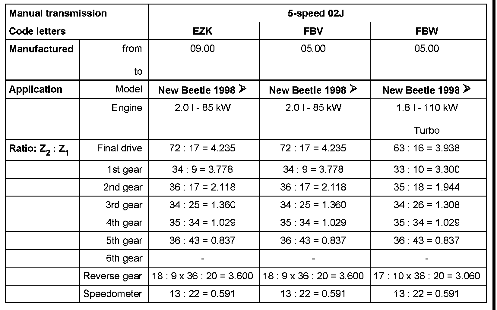 5 Speed Manual 02J
