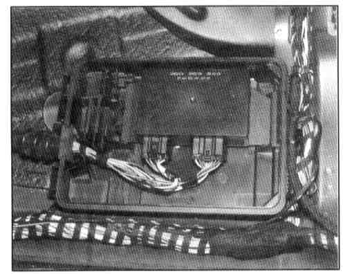 ^ In protective box in floorpan cavity under driver's seat/carpet