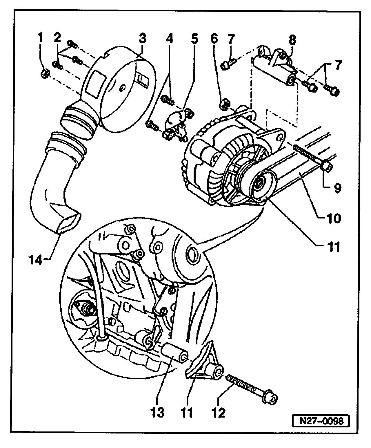 5. Disconnect air duct from generator fitting.