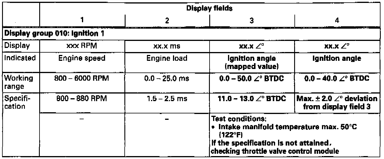- Check measured values for ignition (display fields 3 and 4).