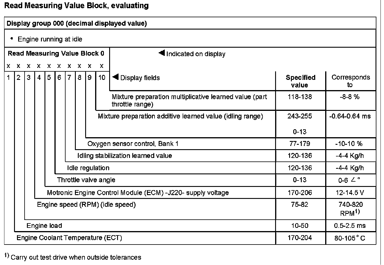 Read Measuring Value Block, evaluating