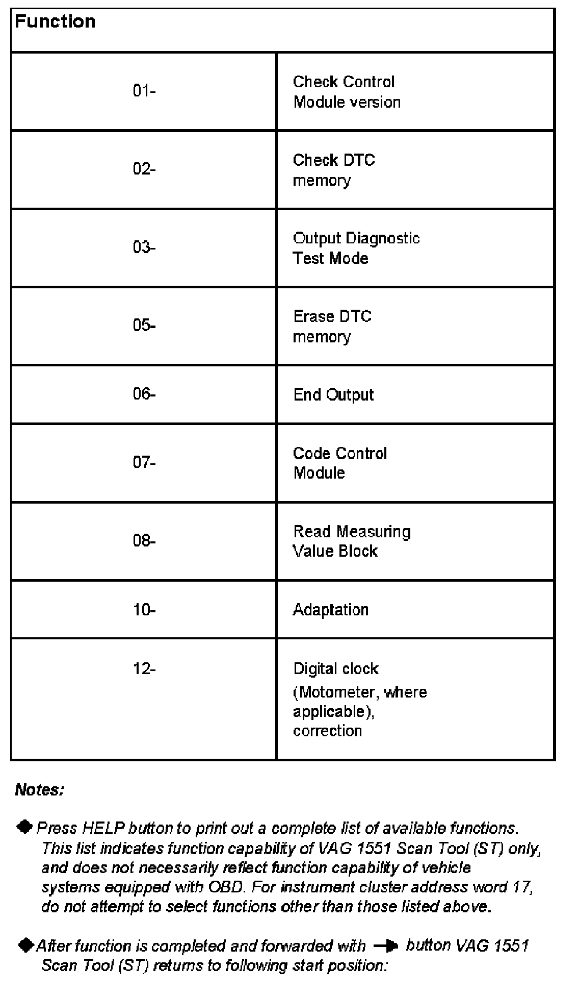 - After repairing malfunctions, again enter address word 17 for instrument cluster and confirm with Q.