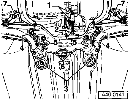 - Lower sub-frame using engine/transmission jack VAG 1383