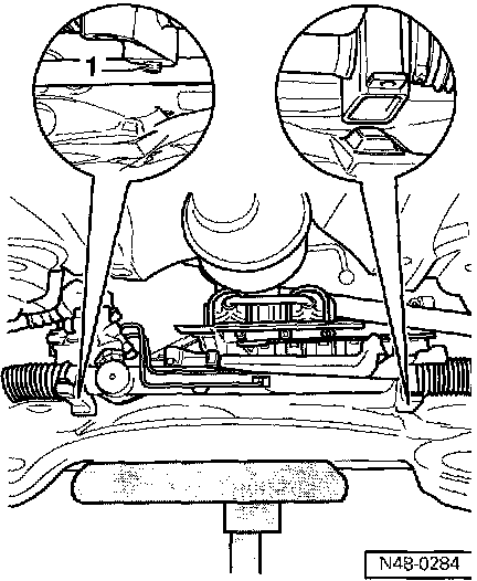 - Place transmission jack VAG 1383A with 1359/2 under subframe.