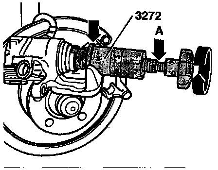 NOTE: Mount tool 3272 so that the tool collar (left arrow) is seated against caliper.