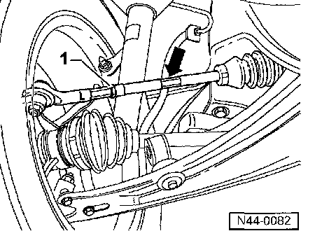 - Tighten lock nut -1- to 50 Nm (37 ft lb) and check toe again to ensure adjustment has not changed