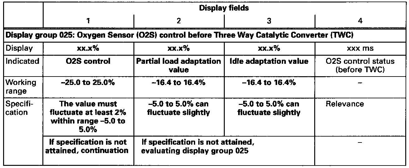 Display Group 025: Oxygen Sensor Control Before Convertor