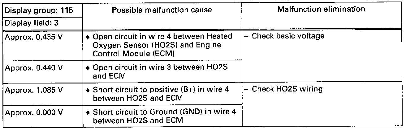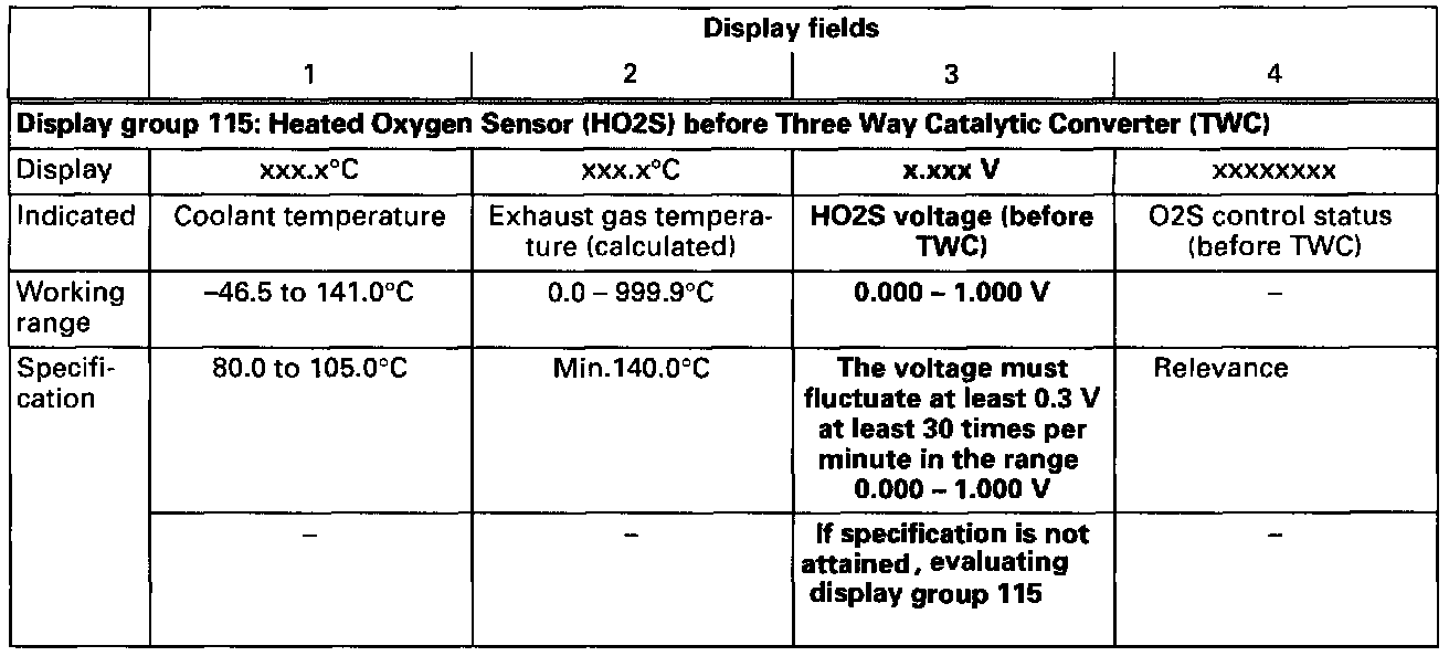 Display Group 115: Heated Oxygen Sensor Before Convertor