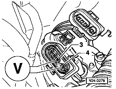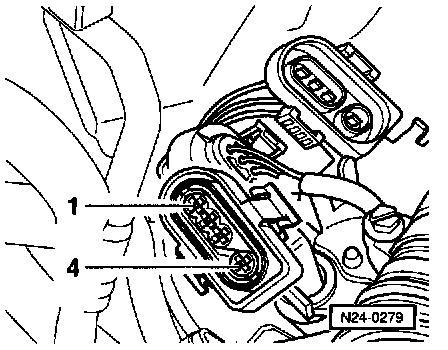 - Separate 4-pin connector (black) -1- to HO2S -G39- (before three way catalytic converter).