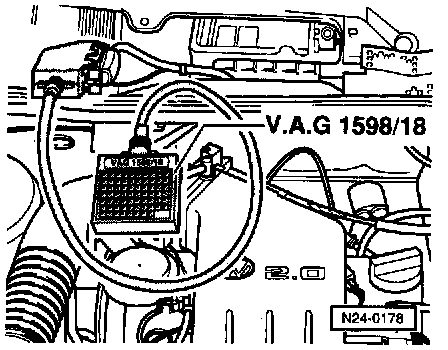- Connect VAG 1598/18 test box to ECM wiring harness.