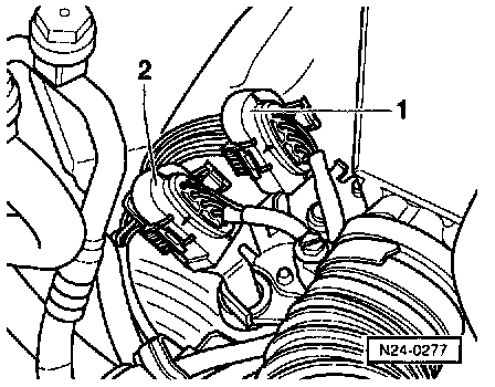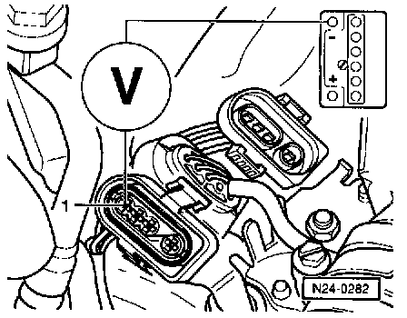 - Separate 4-pin connector -1- (black) to HO2S -G39- (before three way catalytic converter).