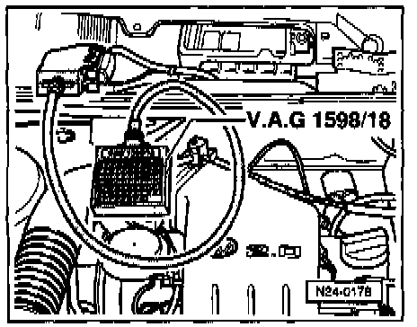 - Connect VAG 1598/18 test box to Engine Control Module wiring harness.