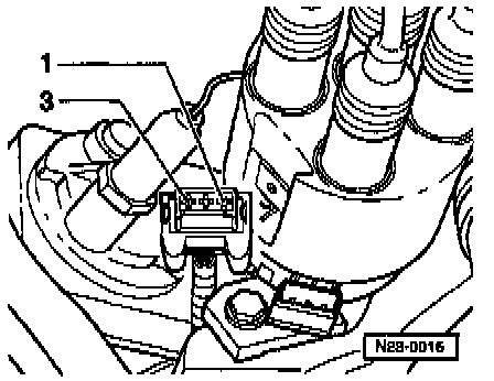 - Connect multimeter using test leads from VW 1594 to measure voltage at terminals 1 and 3 of connector.