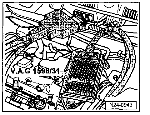 - Connect VAG1598/31 test box to Engine Control Module (ECM) wiring harness. Engine Control Module (ECM) is not connected by this action.