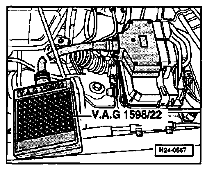 - Connect VAG 1598/22 Test Box to ECM wiring harness.