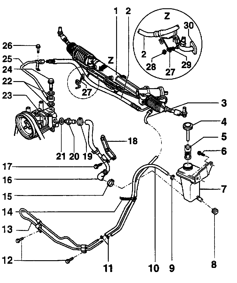 Power steering system, assembly overview (Vehicles with 6-cyl. engine)