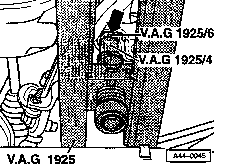 Note: If there are clearance problems when adjusting the special tool VAG 1925, do not attach adapters VAG 1925/4 and VAG 1925/6 until later.