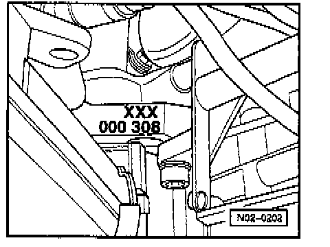 The engine code letters and serial number are located on the flat surface of the cylinder block, in front of right cylinder bank.