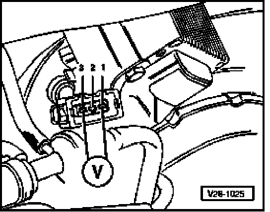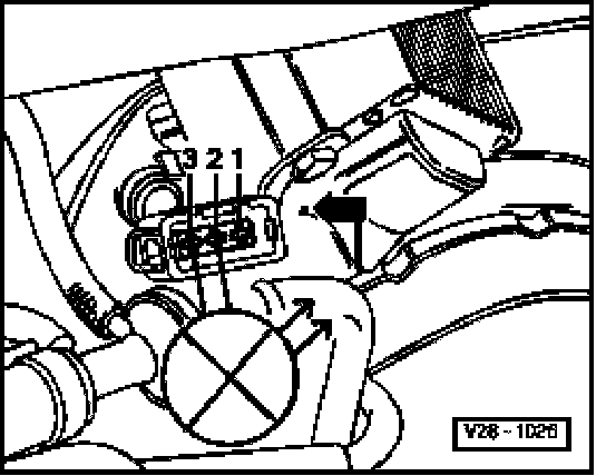 - Connect multimeter to measure voltage using aux. cables from VAG 1594 to contacts 1 + 3 of disconnected connector.